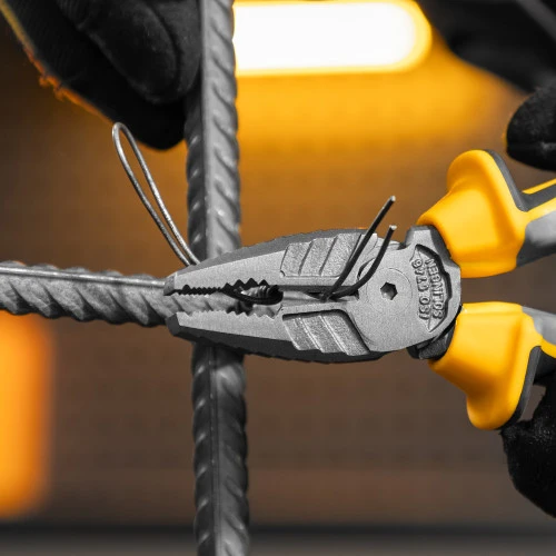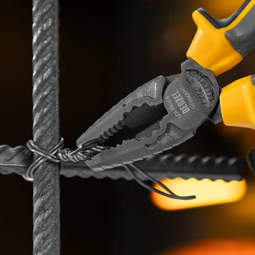 Комбинированные плоскогубцы Denzel 17080 длиной 165 мм, с трехкомпонентными рукоятками, используются для зажима и удержания деталей, сгибания металлических листов. Позволяют также перекусывать мягкую проволоку (алюминиевую, медную, с пределом прочности 220 Н/мм2) диаметром до 4 мм, проволоку средней жесткости и гвозди (750 Н/мм2) диаметром до 3,1 мм, а также жесткую (1800 Н/мм2) толщиной до 2 мм. Имеют внутренние грани специальной формы, предназначенные для использования инструмента в качестве гаечного ключа. Губки с насечками надежно удерживают заготовки. Плоскогубцы пригодятся профессионалу и частному мастеру при проведении слесарных, ремонтных и сборочных работ.