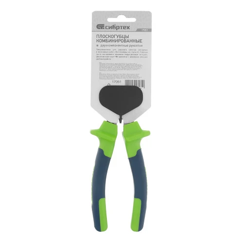 <p>Комбинированные плоскогубцы Сибртех 17051 длиной 180 мм, с двухкомпонентными рукоятками, предназначены для перекусывания проволоки и захвата крепежа, прутков и других деталей. Будут полезны слесарю и монтажнику во время наладки оборудования, ремонта сантехники и выполнения других работ.</p><h2>Преимущества</h2><ul><li>Прочность и надежность — головка из высококачественной стали 45 устойчива к механическим нагрузкам.</li><li>Долговечность — рабочая часть закалена высокочастотными токами, покрыта маслом и отшлифована для повышения твердости и защиты от коррозии.</li><li>Комфортная работа — двухкомпонентные рукоятки с упорами удобно лежат в руке и не выскальзывают из ладони.</li></ul>
