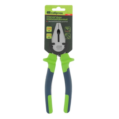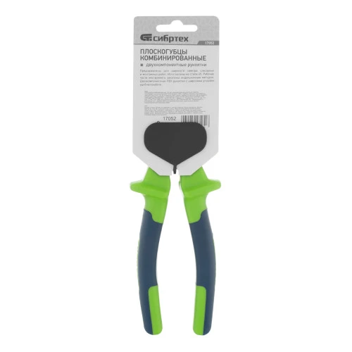 <p>Комбинированные плоскогубцы Сибртех 17052 длиной 200 мм, с двухкомпонентными рукоятками, предназначены для перекусывания проволоки и захвата крепежа, прутков и других деталей. Будут полезны слесарю и монтажнику во время наладки оборудования, ремонта сантехники и выполнения других работ.</p><h2>Преимущества</h2><ul><li>Прочность и надежность — головка из высококачественной стали 45 устойчива к механическим нагрузкам.</li><li>Долговечность — рабочая часть закалена высокочастотными токами, покрыта маслом и отшлифована для повышения твердости и защиты от коррозии.</li><li>Комфортная работа — двухкомпонентные рукоятки с упорами удобно лежат в руке и не выскальзывают из ладони.</li></ul>