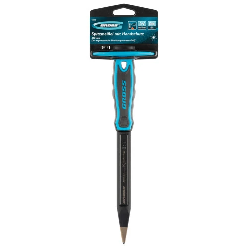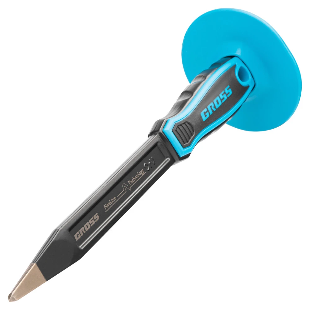 <p>Зубило-керн Gross 18805 длиной 300 мм — ручной инструмент для использования совместно с молотком или кувалдой. Рабочая часть с двусторонней заточкой позволяет штробить бетон или создавать лунки для разметки и установки сверла и бура.</p><h2>Преимущества</h2><ul><li>Прочность и долговечность — режущая часть изготовлена из высококачественной хромованадиевой стали.</li><li>Высокий ресурс — благодаря твердости рабочей части 56-62 HRC зубило-керн отлично держит заточку даже при повышенных механических нагрузках.</li><li>Защита от разрушения — благодаря эмалевому покрытию полотно не подвержено образованию коррозии</li><li>Безопасная эксплуатация — протектор защищает руку мастера от случайного удара молотком или кувалдой.</li><li>Комфортное использование — двухкомпонентная эргономичная рукоятка не выскальзывает из руки, что позволяет долго работать без усталости.</li></ul>