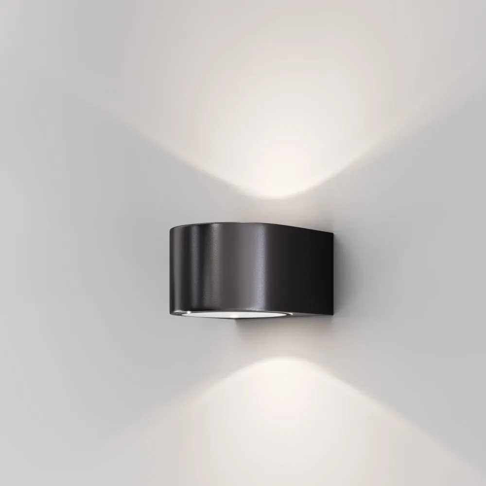 Алюминиевый корпус, цвет - графит. Минималистичный, компактный дизайн. Свечение в одну и в две стороны. LED-источник света. Цветовая температура 3000K. Степень защиты от пыли и влаги IP54.