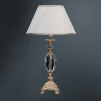 Настольная лампа с хрустальными элементами найдет себе место как в гостинной, так и в спальне, смягчая контуры обстановки и создавая замечательную игру светотени. Данная модель будет украшением Вашего дома. Основание лампы изготовлено из металла с декоративным покрытием под золото, абажур изготовлен из светотехнического пластика, выключатель расположен на шнуре с вилкой.