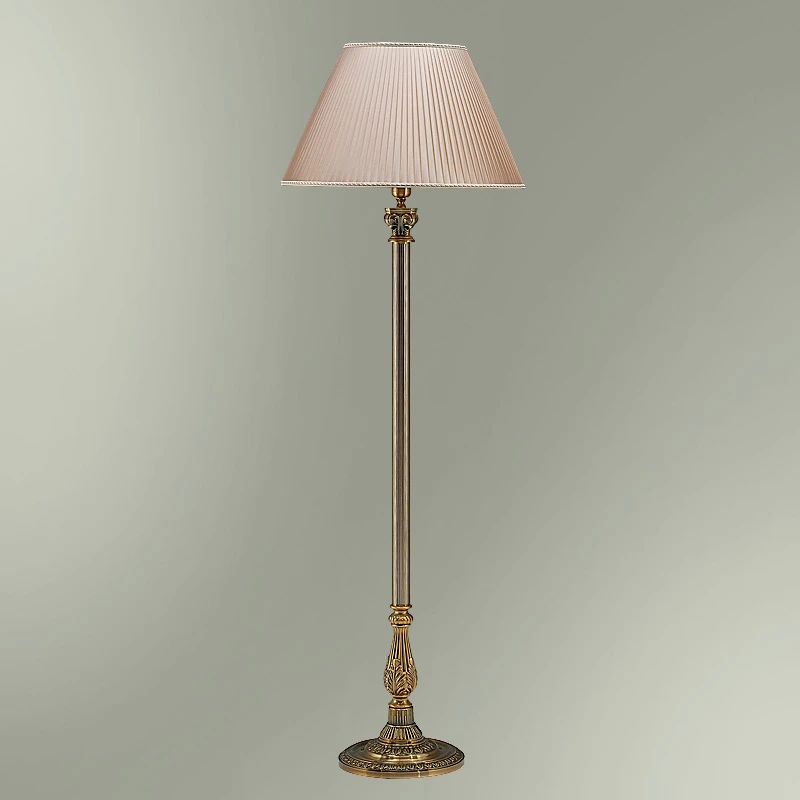 Торшер найдет себе место как в гостинной, так и в спальне, смягчая контуры обстановки и создавая замечательную игру светотени, пригласит к отдыху и создаст островок уединения для чтения и раздумий. Основание торшера изготовлено из цинкового сплава с декоративным покрытием под античную бронзу, абажур изготовлен из текстильной ленты, выключатель расположен на шнуре с вилкой.