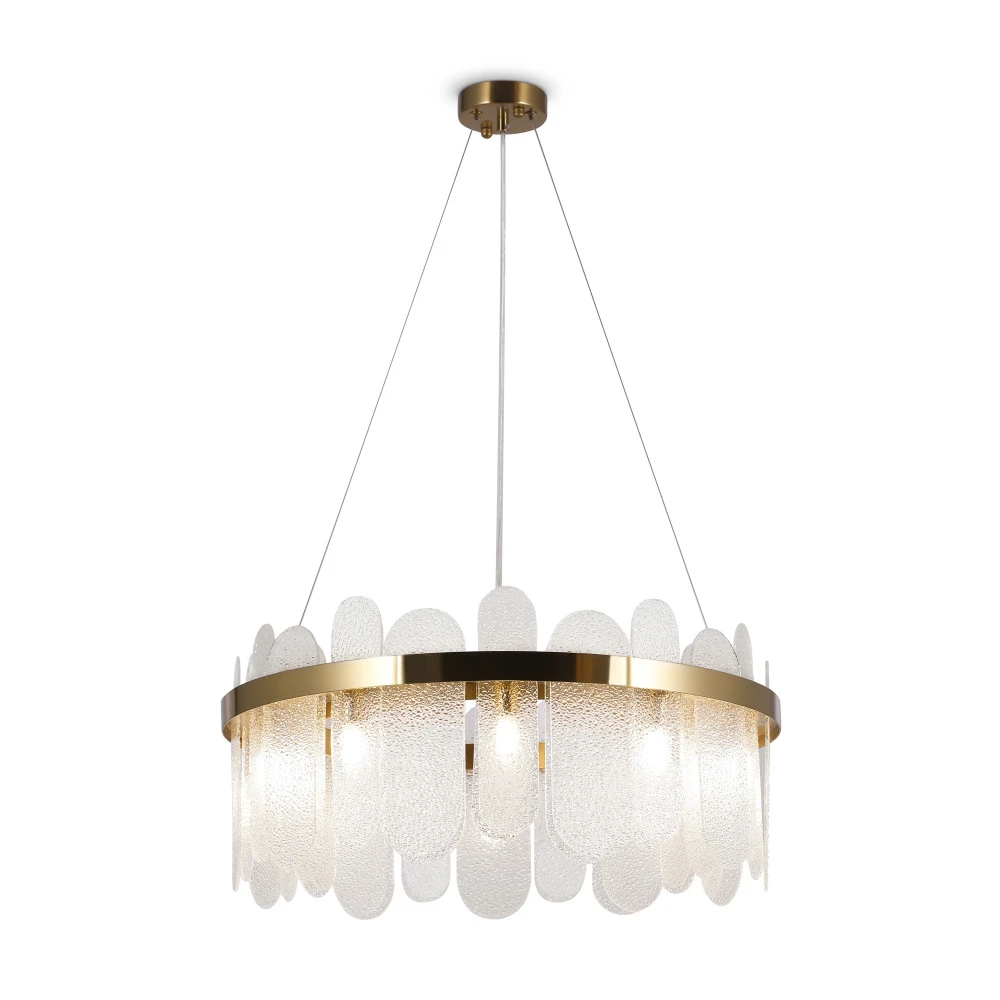 Арматура из металла. Цвет – латунь и никель. Стеклянный декор в двух вариантах: фактурный с эффектом «замороженного стекла» и глянцевый дымчатого оттенка. Источник света – лампа G9.