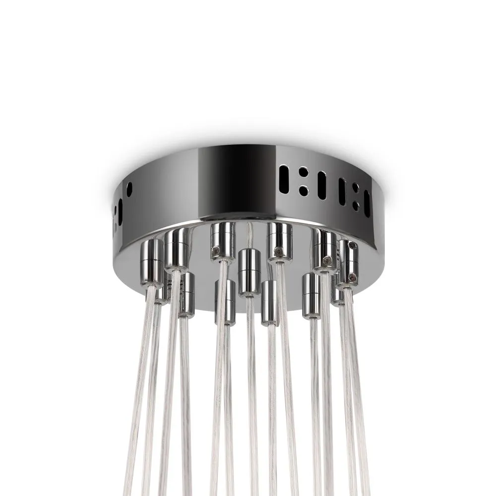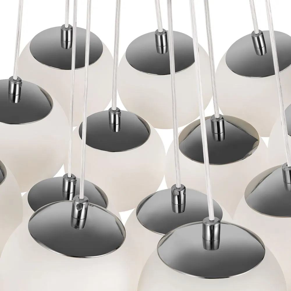Материал арматуры — металл, цвет — хром/латунь. Подвесные светильники c цоколями E14/E27/G9. Белые стеклянные плафоны с рисунком в виде космических планет крепятся на тонких тросах, которые регулируются по высоте, создавая эффект парящих облаков.