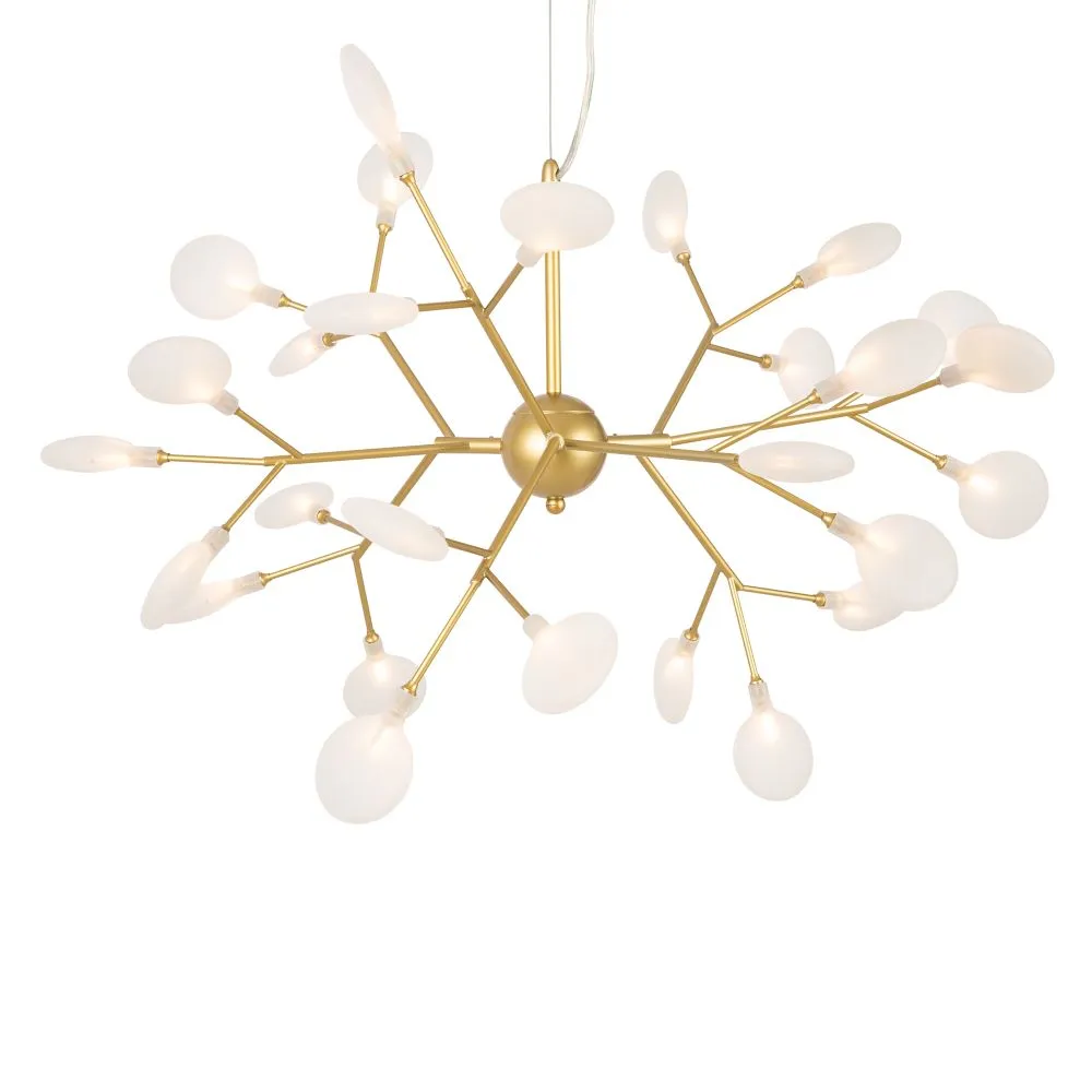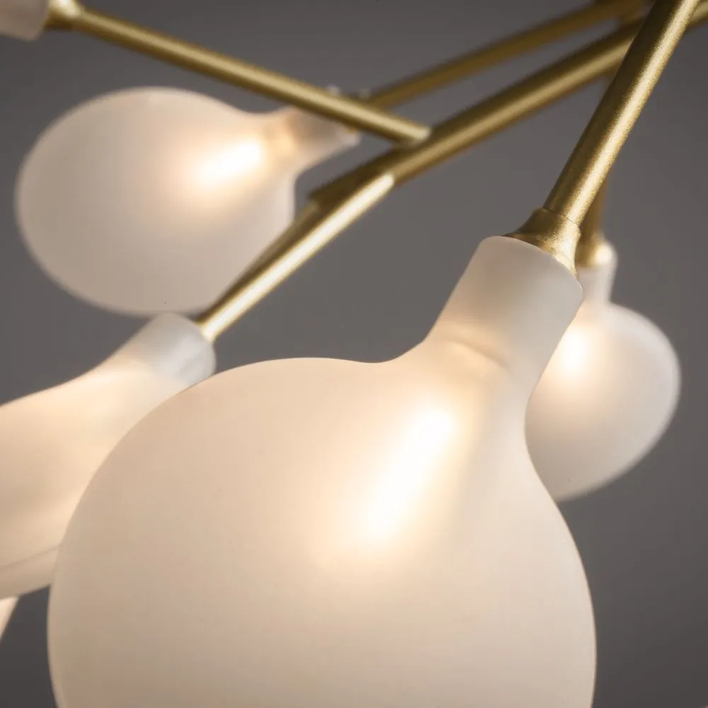 Материал арматуры – металл. Оттенки – черный, белый. Стеклянные плафоны оригинальной формы. Трендовый флористический дизайн. Источник света – лампа G4.