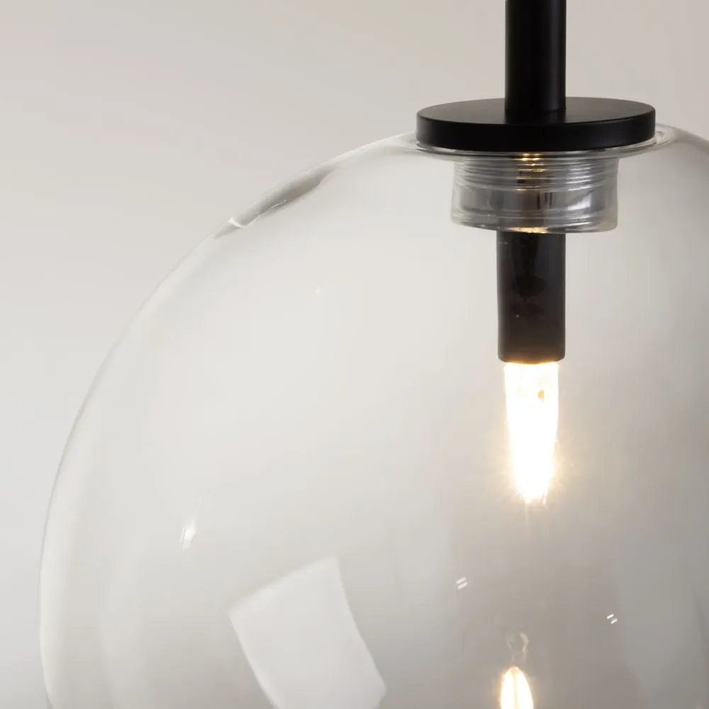 Материал арматуры - металл. Цвет - латунь, черный. Изящные линии арматуры, прозрачные плафоны из стекла в виде шара с миниатюрными лампами создают эффект воздушности светильников. Регулируемая высота подвесных светильников. Цоколь G4.