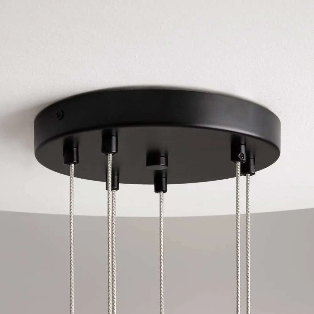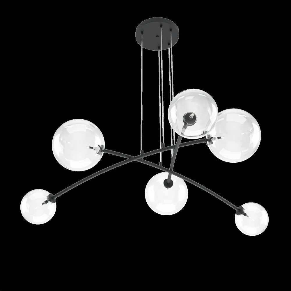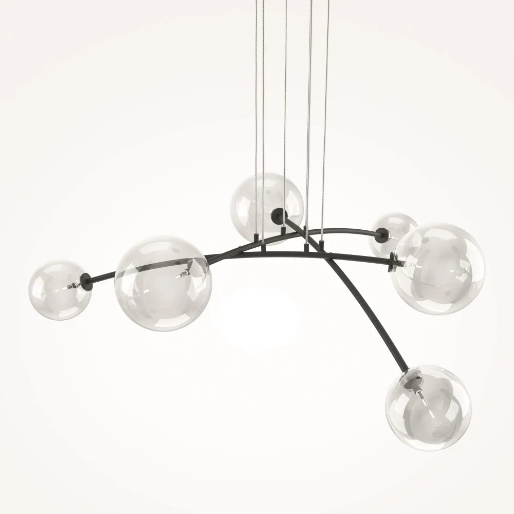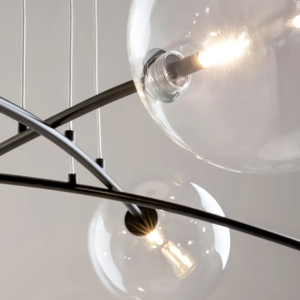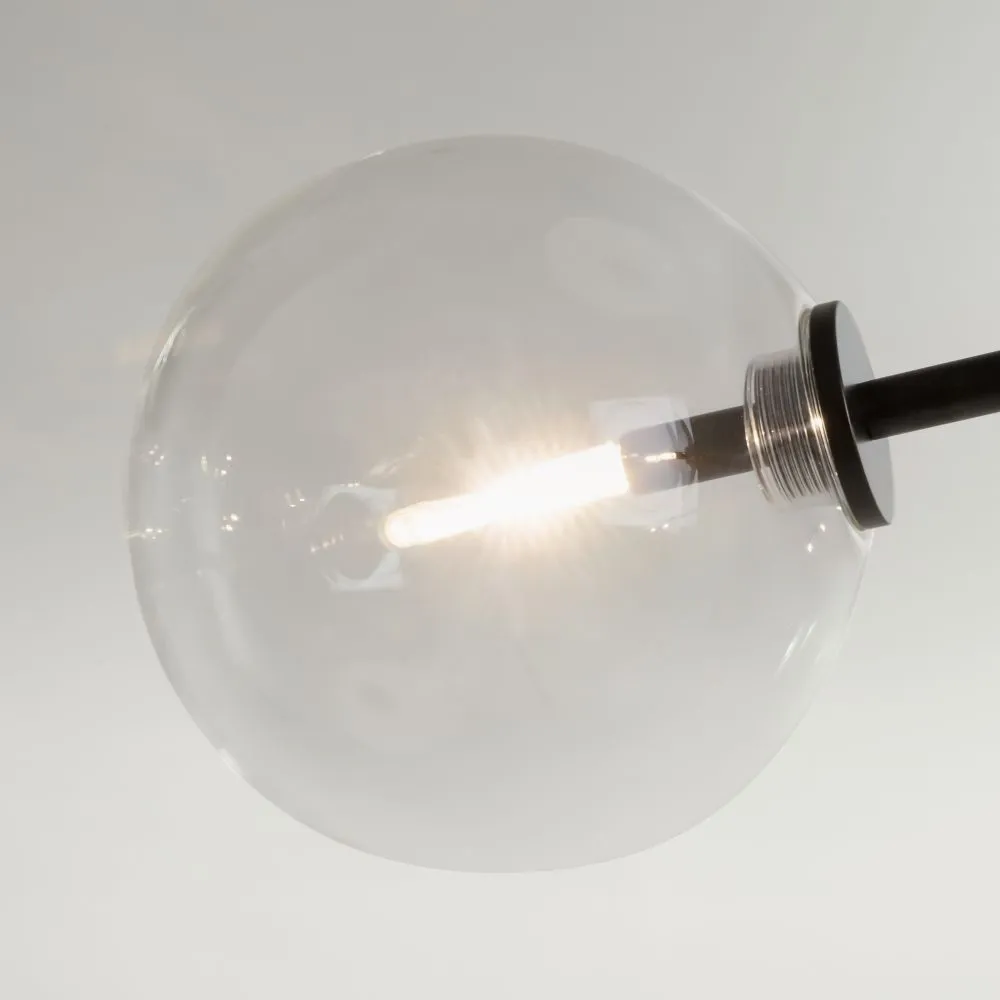 Материал арматуры - металл. Цвет - латунь, черный. Изящные линии арматуры, прозрачные плафоны из стекла в виде шара с миниатюрными лампами создают эффект воздушности светильников. Регулируемая высота подвесных светильников. Цоколь G4.