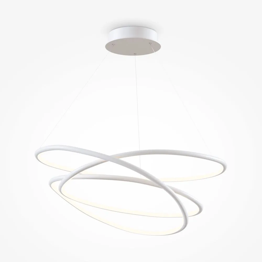 Материал арматуры – алюминий, порошковое окрашивание. Цвета - белый, латунь. . Источ ник света – SMD-светодиоды, скрытые под опаловым диффузором. Два варианта регулируемой цветовой температуры - 2600К-3500К и 3000К-4000K. Высота регулируется тросами.