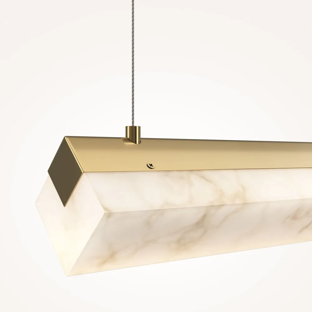 Арматруа - металл, цвет латунь. Световой слот из натурального камня с мраморным рисунком эффектно обрамляет латунный остов образуя форму ромба. Регулируемаядлина тросов - 3 метра. LED-источник света, цветовая температура 3000К. Завораживающее свечение каменного слота при включенном свете.