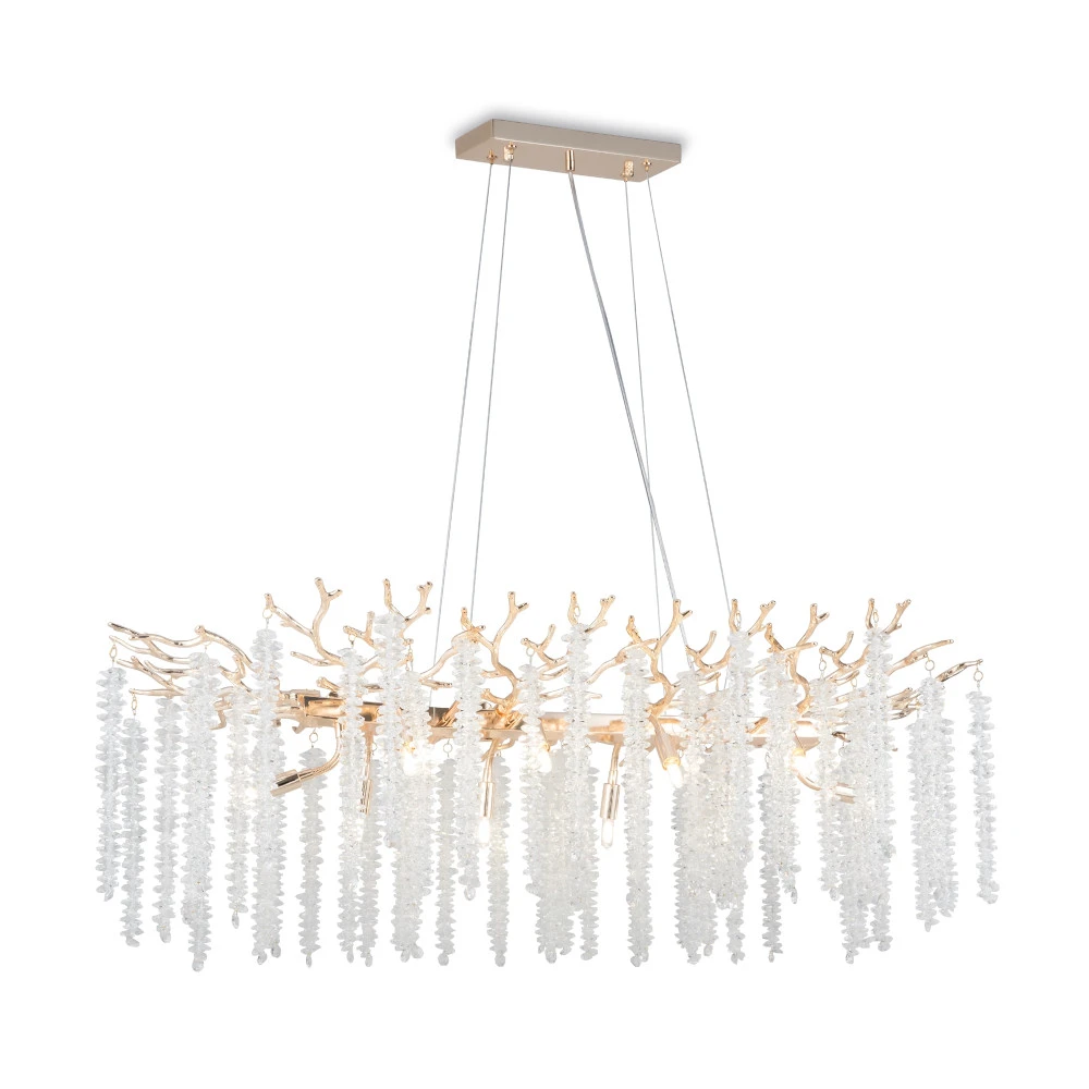 Материалы арматуры —металл, цвет — золото. Хрустальные декоративные элементы напоминают капельки - создают глубокие переливы света. Дизайн в трендовой растительной тематике. Источник света — лампа с цоколем G9 и с поворотной функцией.