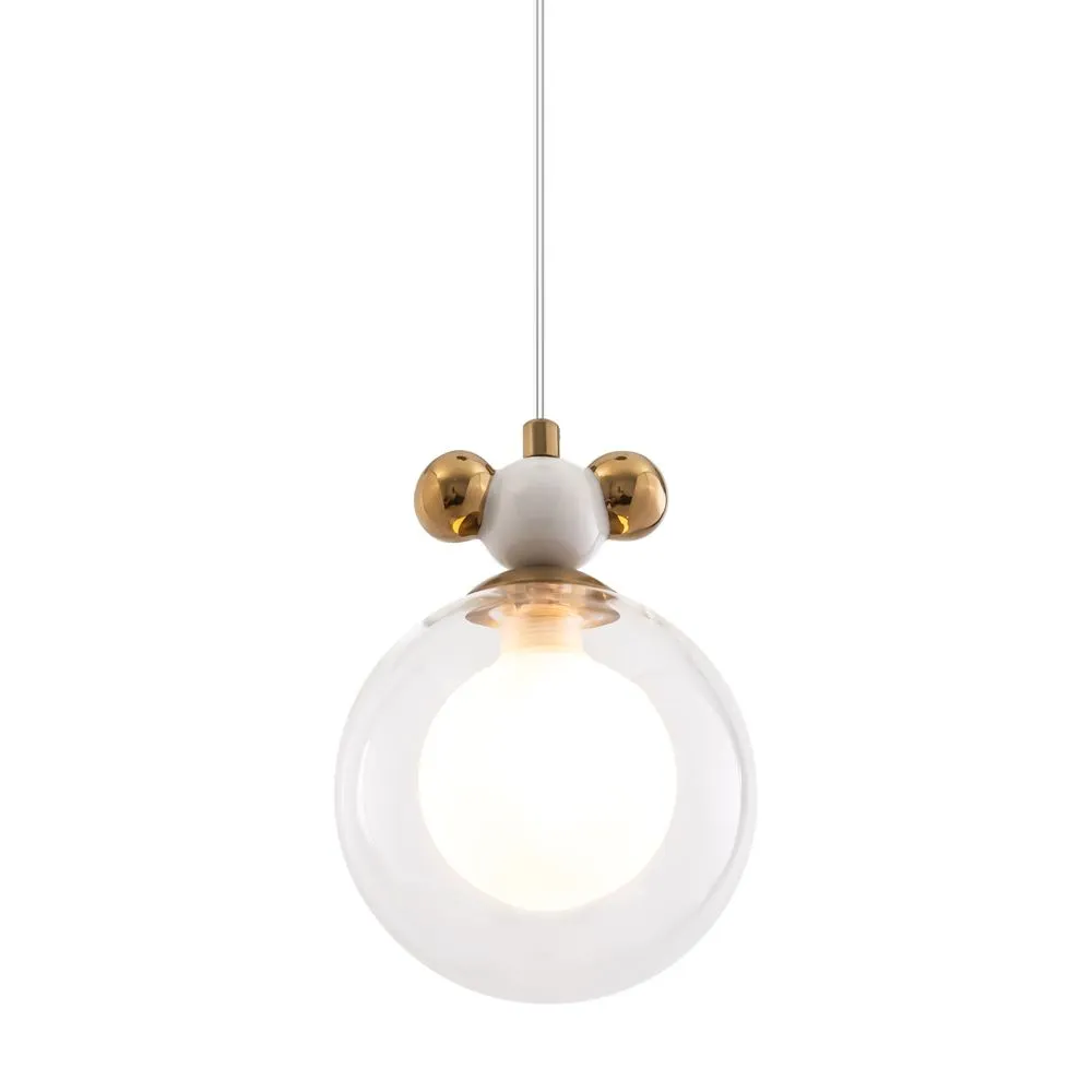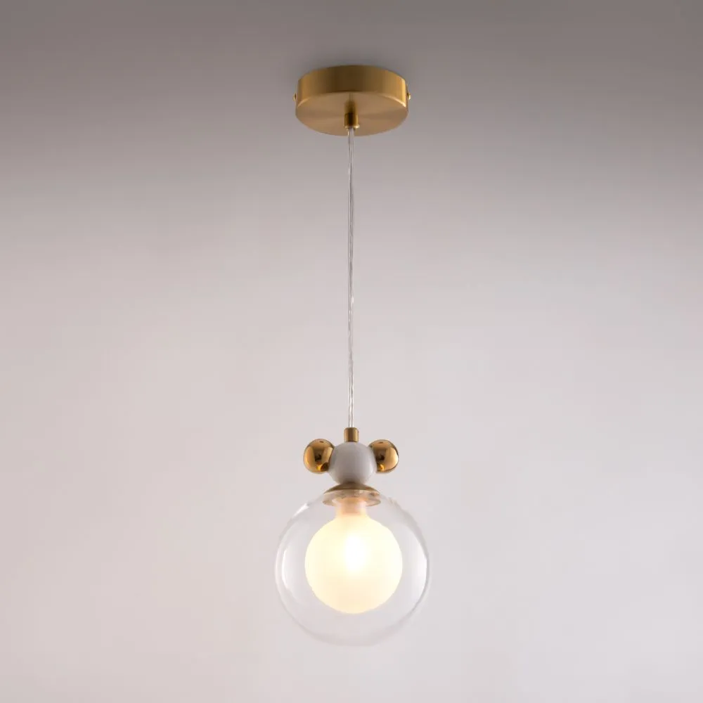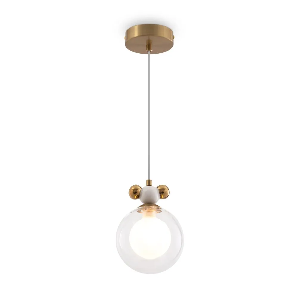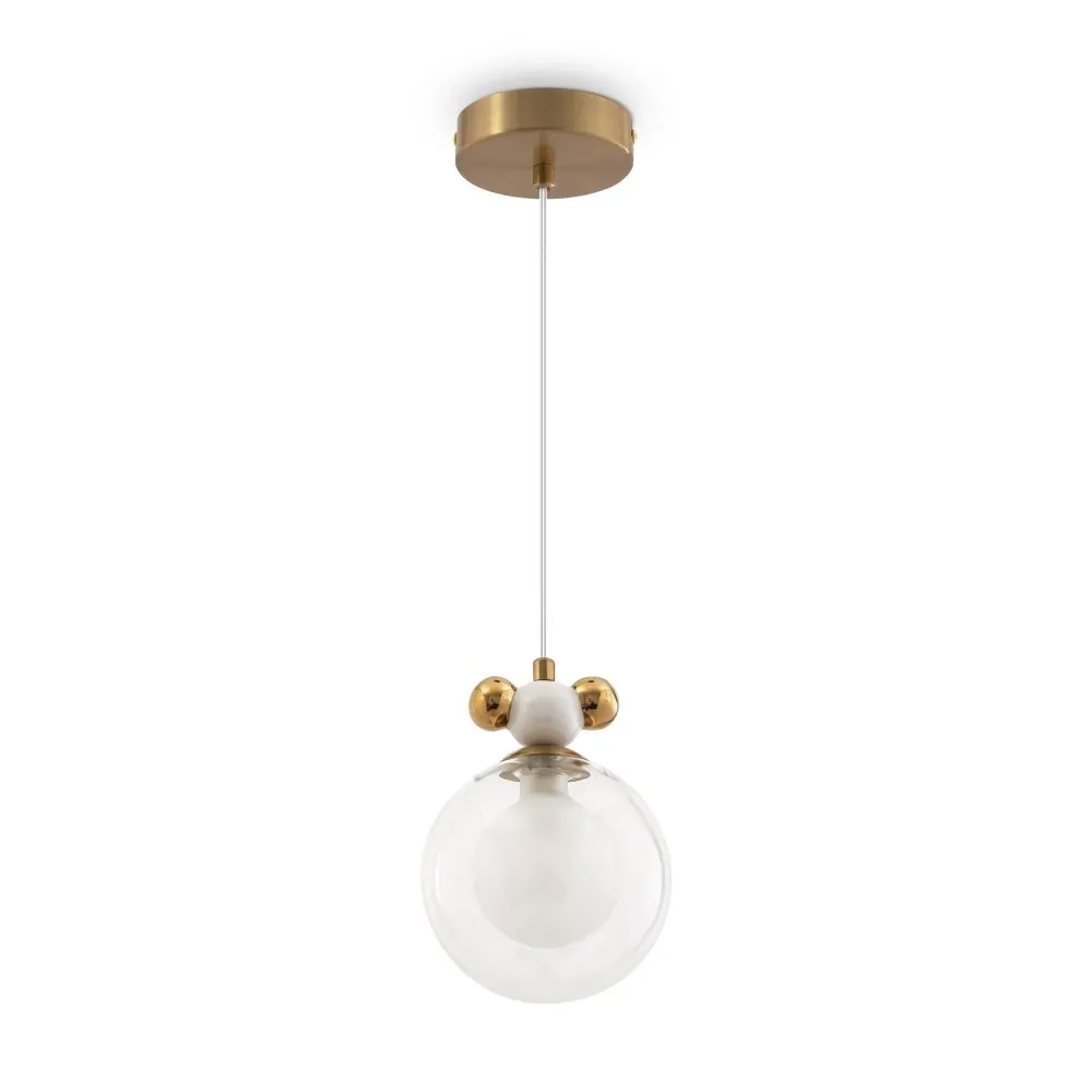 Металлическая арматура, два цвета — латунь и хром. Разные по форме плафоны — цилиндрические или овальные, украшены металлическими шариками. Стекло двойное, прозрачное или с легким матовым напылением. Конструкцию можно регулировать по высоте. Источником света служит лампа с цоколем G9 или Е14.