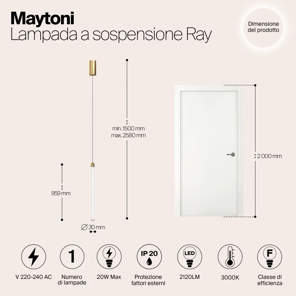 Едва уловимый взглядом светильник серии Ray буквально пронизывает пространство светом. Под корпусом из металла и акрила скрываются мощные SMD-светодиоды. Арматура выполнена из алюминия. Светильники окрашены в черный, белый и цвет матового золота. Тонкий провод добавляет конструкции легкости и регулируется по длине, позволяя расположить светильник на нужной высоте. Разная длина корпусов позволит составить индивидуальную композицию для украшения интерьера.