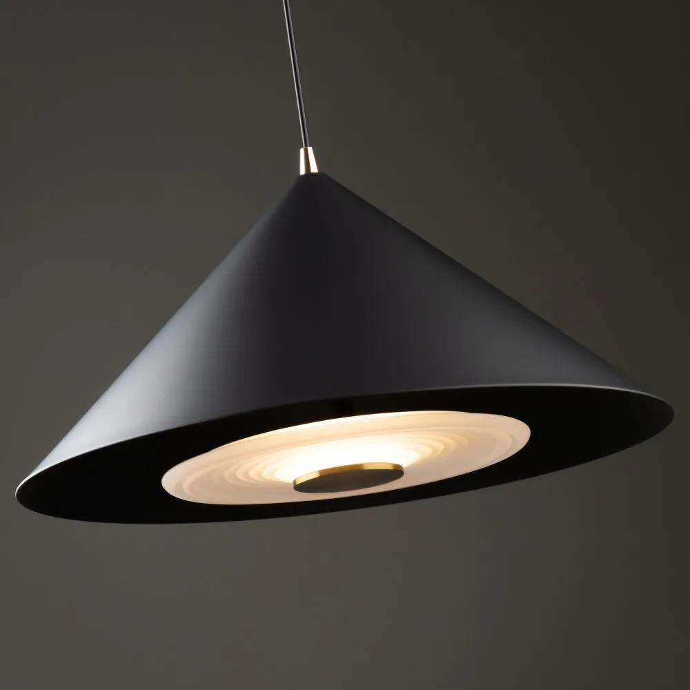 Металлическая арматура, цвета — чёрный и белый. Плафоны — конусовидные, среднего размера. Универсальный минималистичный дизайн, регулируемая высота. Светодиодный источник света. Цветовая температура — 3000К.