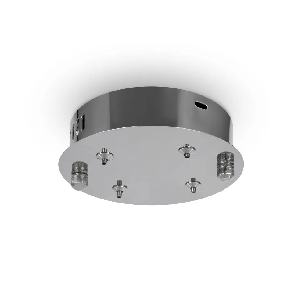 Металлическая арматура в цвете латунь и хром. Хрустальные декоративные кольца с геометричными гранями. LED-источник света. Регулировка цветовой температуры (3000-4000-5000K) и яркости 4G-dimming при помощи пульта (в комплекте).