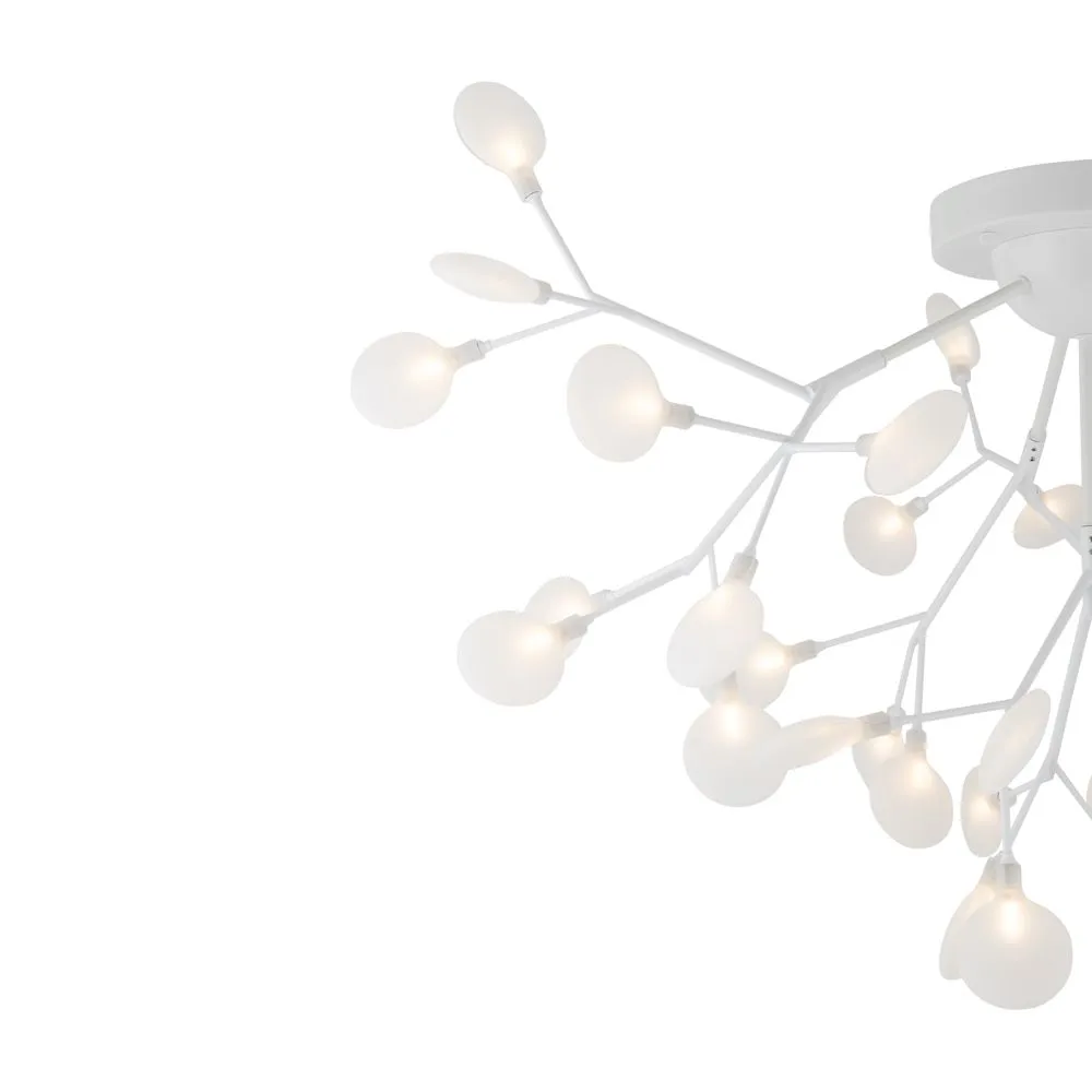 Материал арматуры – металл. Оттенки – черный, белый. Стеклянные плафоны оригинальной формы. Трендовый флористический дизайн. Источник света – лампа G4.
