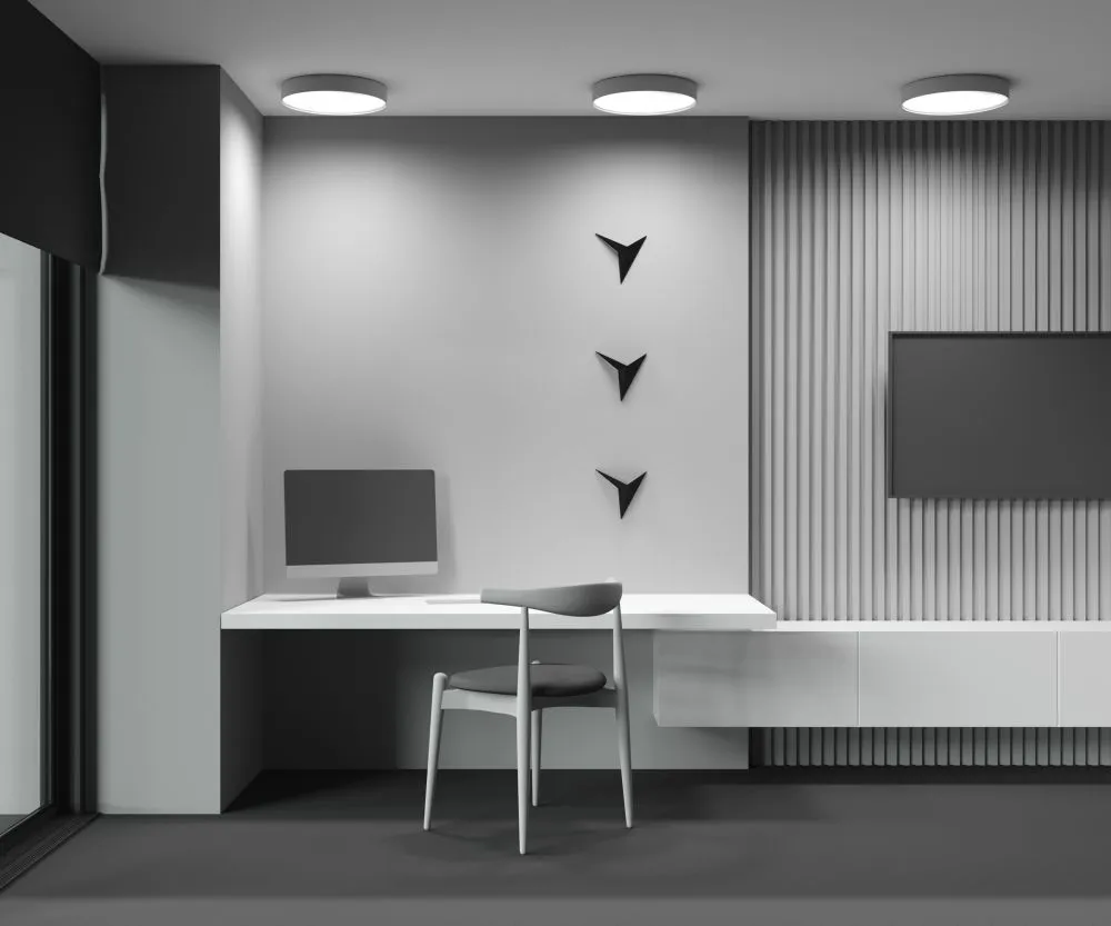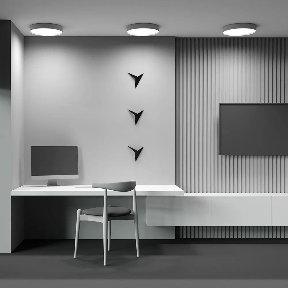Материал корпуса – металл; цвета – чёрный, белый и золотой. Формы корпуса: круглая и квадратная. Типы монтажа: накладной, подвесной, а также трековые светильники. Подвесной монтаж универсален для обеих форм. Монтаж без видимых болтов. Варианты мощностей: 12W, 24W, 36W, 45W и 90W. LED-источник света. Цветовая температура – 3000 или 4000К. Высокий коэффициент цветопередачи. Совместимость с драйверами DALI и Triac для изменения цветовой температуры и диммирования. Аксессуар для монтажа круглых моделей в ГКЛ под шпаклёвку и универсальное крепление в ассортименте.