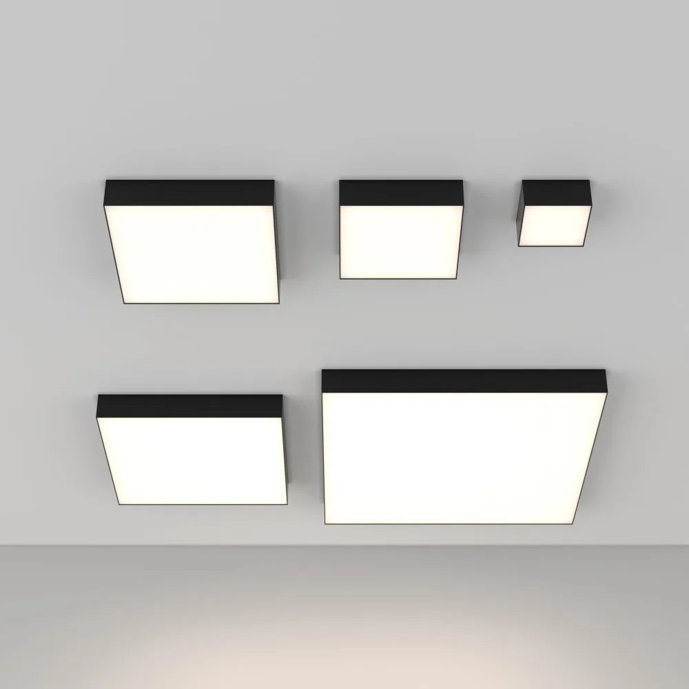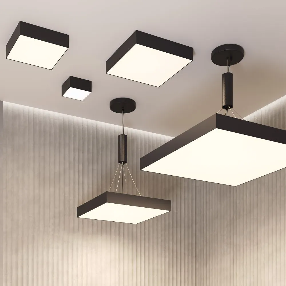 Материал корпуса – металл; цвета – чёрный, белый и золотой. Формы корпуса: круглая и квадратная. Типы монтажа: накладной, подвесной, а также трековые светильники. Подвесной монтаж универсален для обеих форм. Монтаж без видимых болтов. Варианты мощностей: 12W, 24W, 36W, 45W и 90W. LED-источник света. Цветовая температура – 3000 или 4000К. Высокий коэффициент цветопередачи. Совместимость с драйверами DALI и Triac для изменения цветовой температуры и диммирования. Аксессуар для монтажа круглых моделей в ГКЛ под шпаклёвку и универсальное крепление в ассортименте.