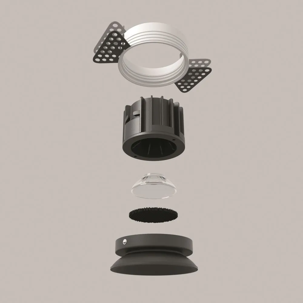 Материал корпуса – металл; цвет – белый, чёрный и латунь. Два варианта корпуса: встраиваемые светильники с узкой рамкой и встраиваемые светильники без видимой рамки, предназначенные для безрамочного монтажа под шпаклёвку. Широкий угол рассеивания 60°. Утопленный LED-источник света мощностью 7 или 12Вт. Высокий коэффициент цветопередачи. Цветовая температура 3000К или 4000К. Наличие биодинамических моделей и дополнительных антибликовых фильтров.