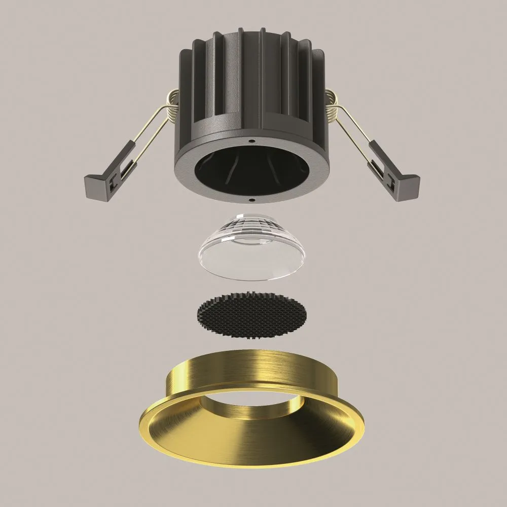 Материал корпуса – металл; цвет – белый, чёрный и латунь. Два варианта корпуса: встраиваемые светильники с узкой рамкой и встраиваемые светильники без видимой рамки, предназначенные для безрамочного монтажа под шпаклёвку. Широкий угол рассеивания 60°. Утопленный LED-источник света мощностью 7 или 12Вт. Высокий коэффициент цветопередачи. Цветовая температура 3000К или 4000К. Наличие биодинамических моделей и дополнительных антибликовых фильтров.
