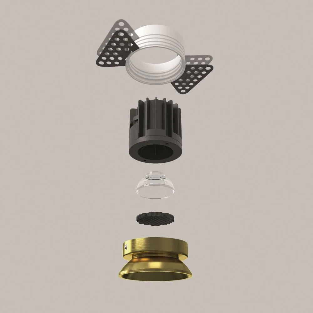 Материал корпуса – металл; цвет – белый, чёрный и латунь. Два варианта корпуса: встраиваемые светильники с узкой рамкой и встраиваемые светильники без видимой рамки, предназначенные для безрамочного монтажа под шпаклёвку. Широкий угол рассеивания 60°. Утопленный LED-источник света мощностью 7 или 12Вт. Высокий коэффициент цветопередачи. Цветовая температура 3000К или 4000К. Наличие биодинамических моделей и дополнительных антибликовых фильтров.