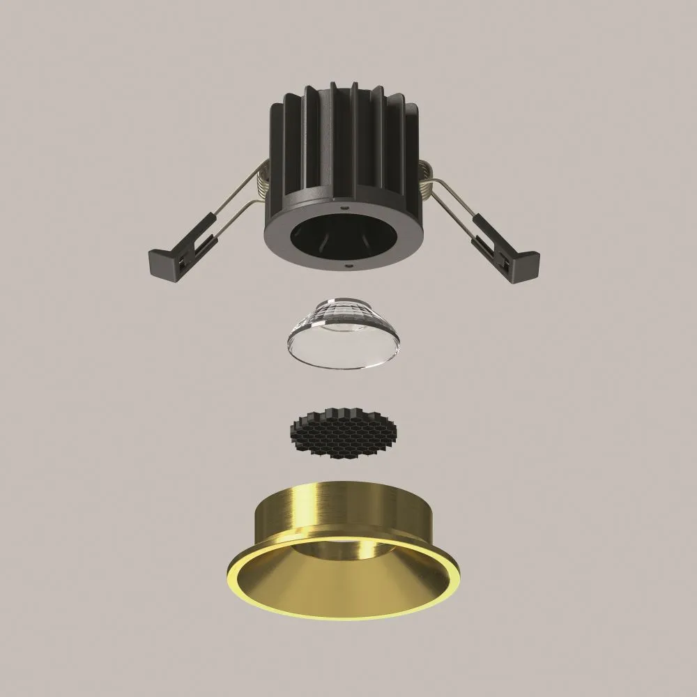 Материал корпуса – металл; цвет – белый, чёрный и латунь. Два варианта корпуса: встраиваемые светильники с узкой рамкой и встраиваемые светильники без видимой рамки, предназначенные для безрамочного монтажа под шпаклёвку. Широкий угол рассеивания 60°. Утопленный LED-источник света мощностью 7 или 12Вт. Высокий коэффициент цветопередачи. Цветовая температура 3000К или 4000К. Наличие биодинамических моделей и дополнительных антибликовых фильтров.