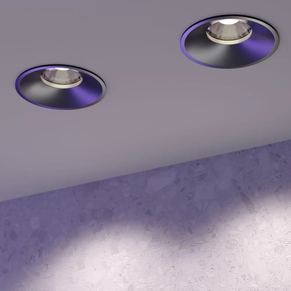 Материал корпуса – металл; цвет – белый, чёрный и латунь. Два варианта корпуса: встраиваемые светильники с узкой рамкой и встраиваемые светильники без видимой рамки, предназначенные для безрамочного монтажа под шпаклёвку. Широкий угол рассеивания 60°. Утопленный LED-источник света мощностью 7 или 12Вт. Высокий коэффициент цветопередачи. Цветовая температура 3000К или 4000К. Наличие биодинамических моделей и дополнительных антибликовых фильтров.