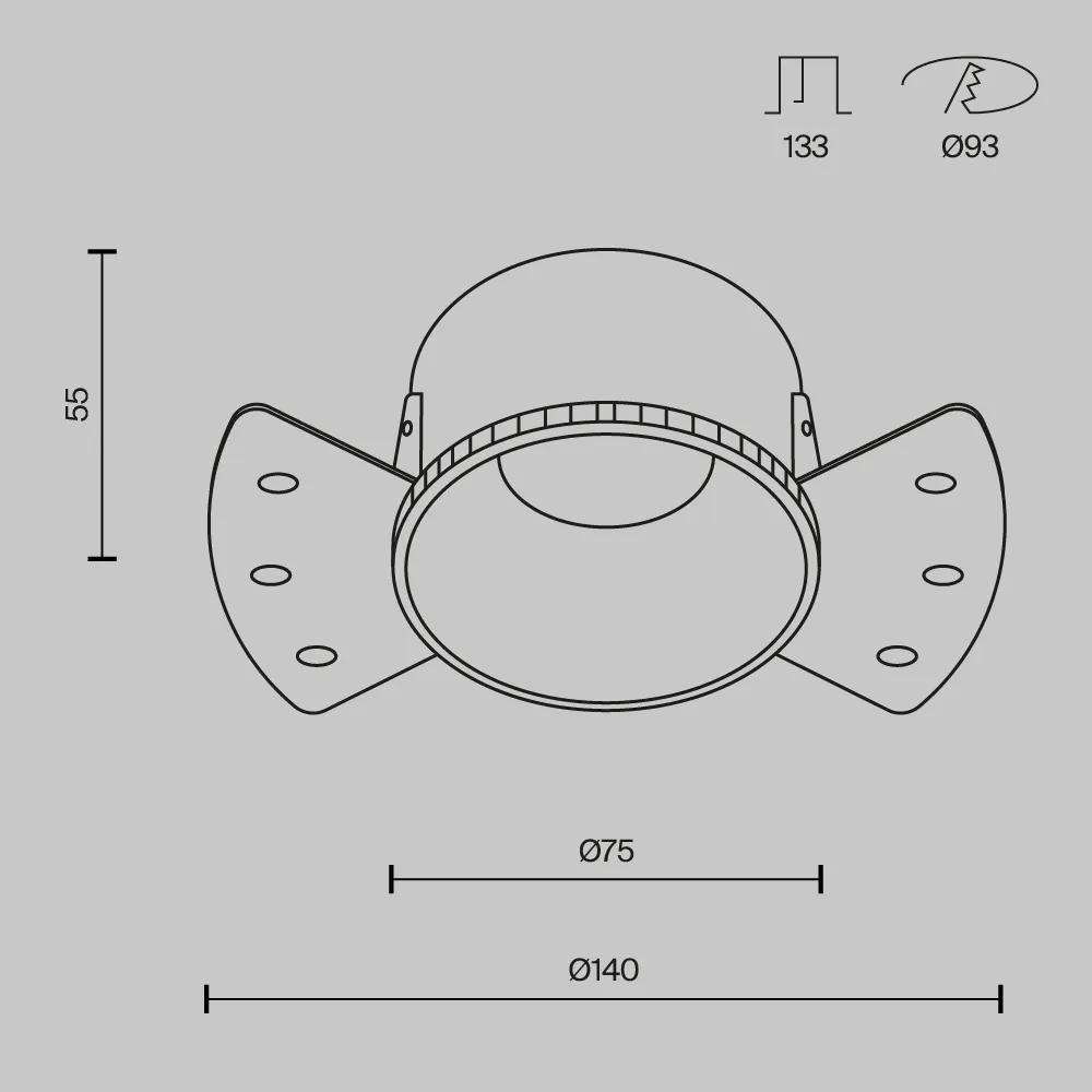 Материал корпуса - алюминий, цвет - графит. Белый рассеиватель из акрила. Источник света - лампа с цоколем GU10, цветовая температура - 3000К. Степень защиты - IP54. Совместимы с лампами 2424, 2426, 8458, 7061 из ассортимента.