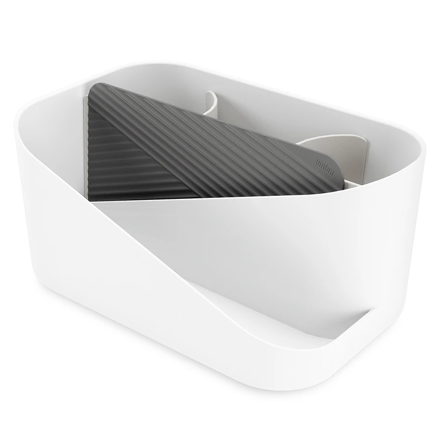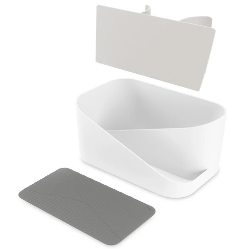 Несколько отделений позволяют организованно размещать предметы разных размеров. В набор входит силиконовый термостойкий коврик для горячих плоек и утюжков. Компактный органайзер не занимает много места в ванной или на туалетном столике.