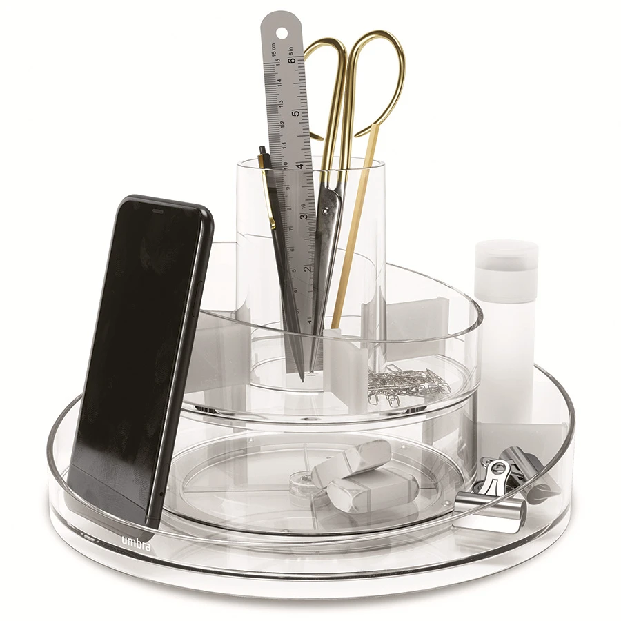 Многоуровневый органайзер поможет организовать хранение косметики и аксессуаров.